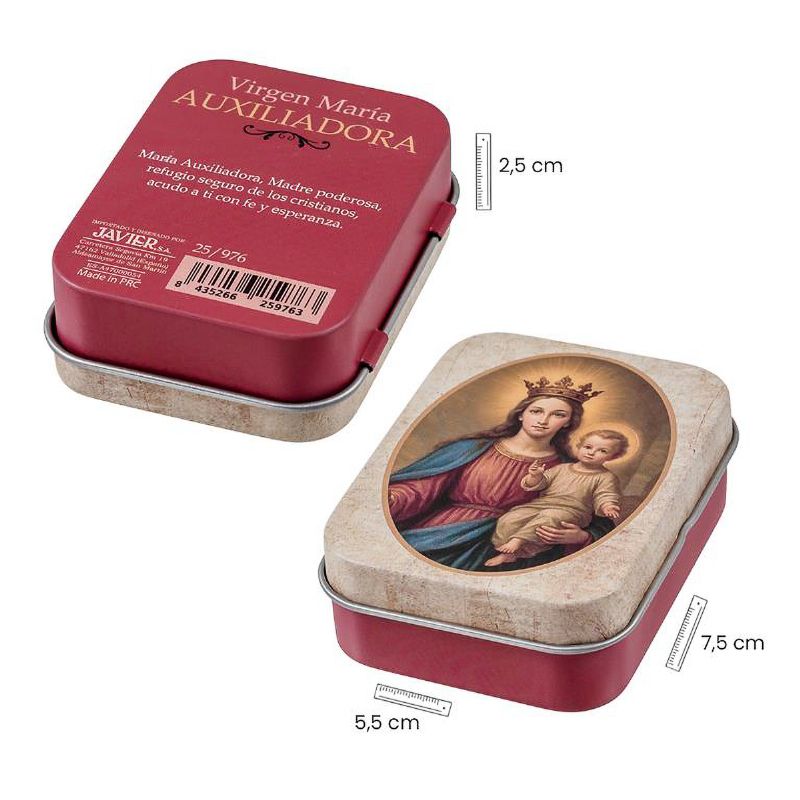Se encuentra en la ficha del producto Virgen María Auxiliadora - Figura de resina en lata - 5 cm con referencia 25/976.